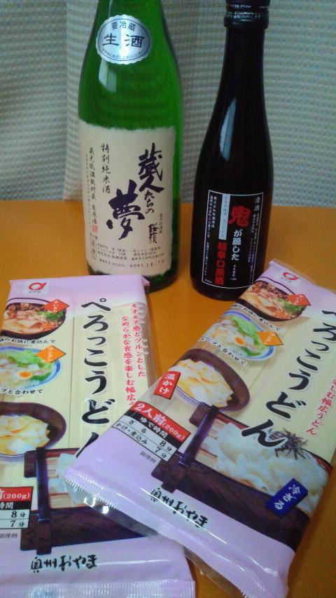 岩手の酒蔵 桜顔酒造のお酒2本と、ぺろっこうどん