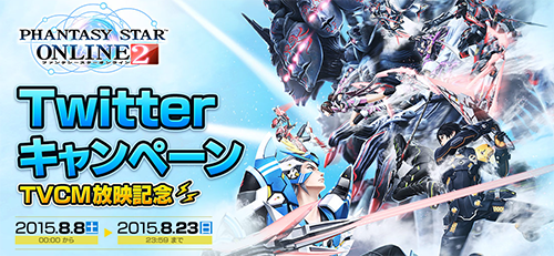 【TVCM放送記念 Twitterキャンペーン第2弾】8/8(土)より開始します!毎日0時につぶやく対象ツイートをリツイートして豪華報酬をゲット!詳細はこちら! pso2.jp/players/campai… #PSO2 pic.twitter.com/ohLwSMjlFQ