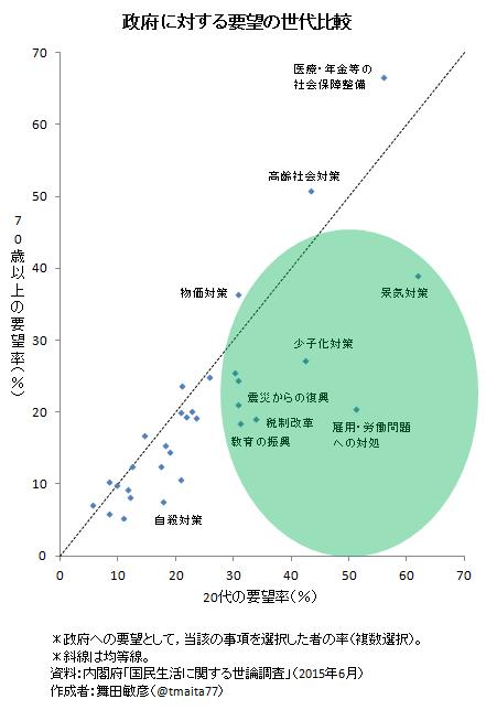 若者と高齢者では異なる。若者が選挙に行けば,政策の重点も変わるはず。pic.twitter.com/r4KaXM7vA9
