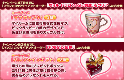 【PC版キャンペーン】2/13 11:00までに、フランカのクライアントオーダー「ヴォル・ドラゴンの牙の調達」をクリアすると「マグカップ♀」がもらえます! pso2.jp/players/news/?… #PSO2 #愛バレキャンペーン2 pic.twitter.com/Gnxvm31o