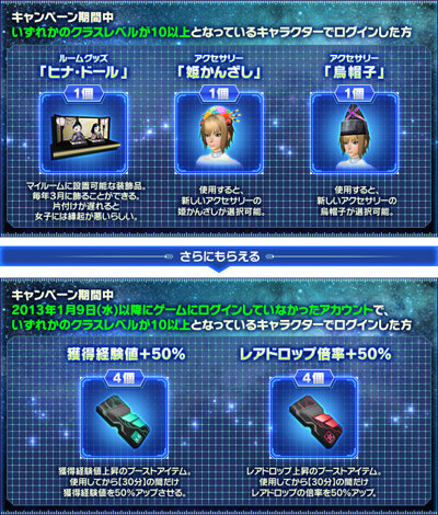【PC版キャンペーン】さらに、2013/1/9以降ゲームにログインしていなかったアカウントで、2/20 11:00までにログインした方にもアイテムをプレゼント! pso2.jp/players/news/?… #PSO2 #カムバック&サンクス pic.twitter.com/EgLvrxrj